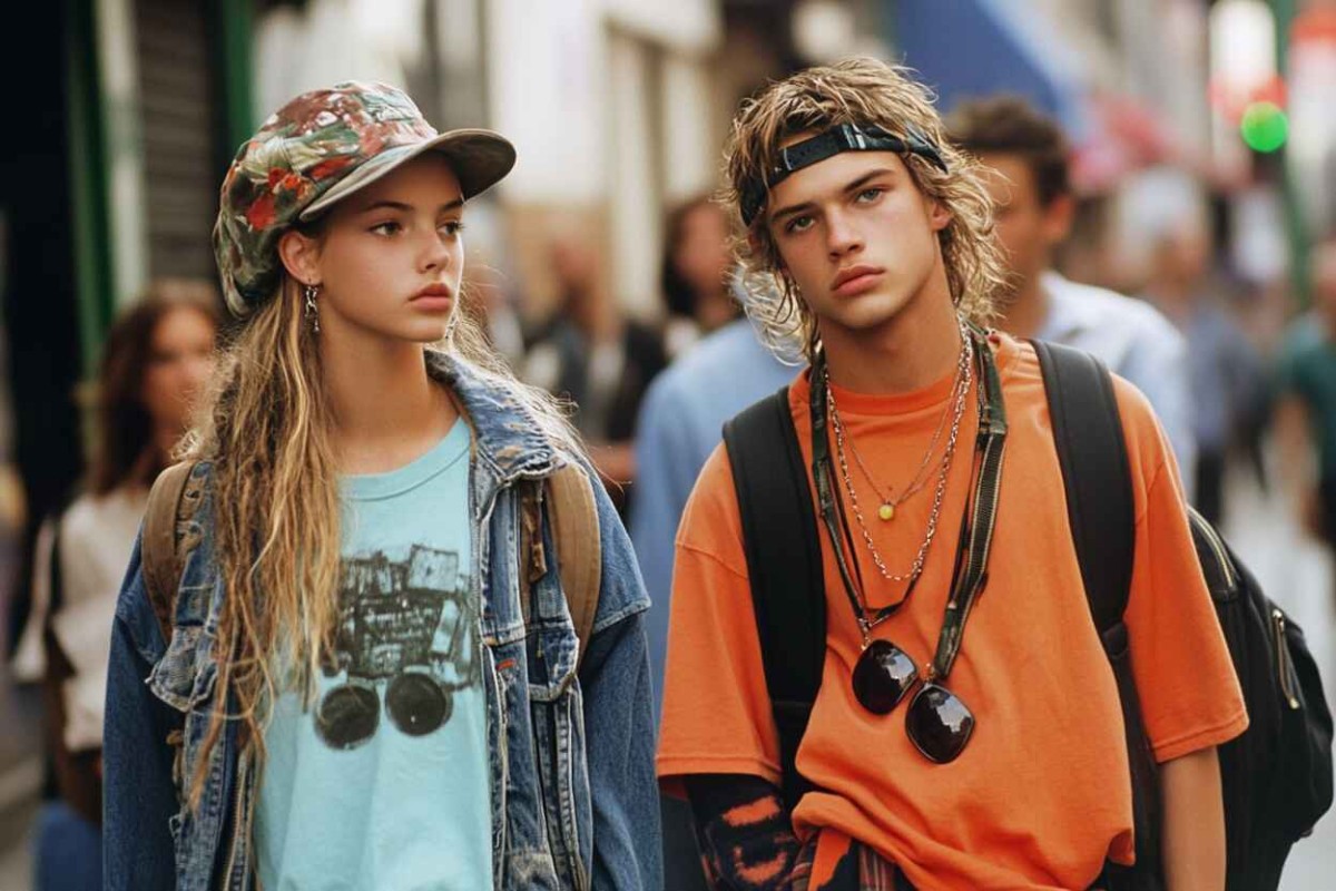 Подобные образы – отличное решение для самовыражения и проявления индивидуальности подростков. Для данного стиля свойственна небрежность и неопрятность, которая является нарочито подчеркнутой. При этом при выборе цветовой гаммы стоит отдавать предпочтение приглушенной нейтральной базе, но разбавлять ее яркими пятнами, крупными надписями. Приветствуется дополнение вещей потертостями и неким эффектом поношенности. Предметы гардероба из денима зачастую идут в сочетании с рваными краями и всевозможными прорезями.
