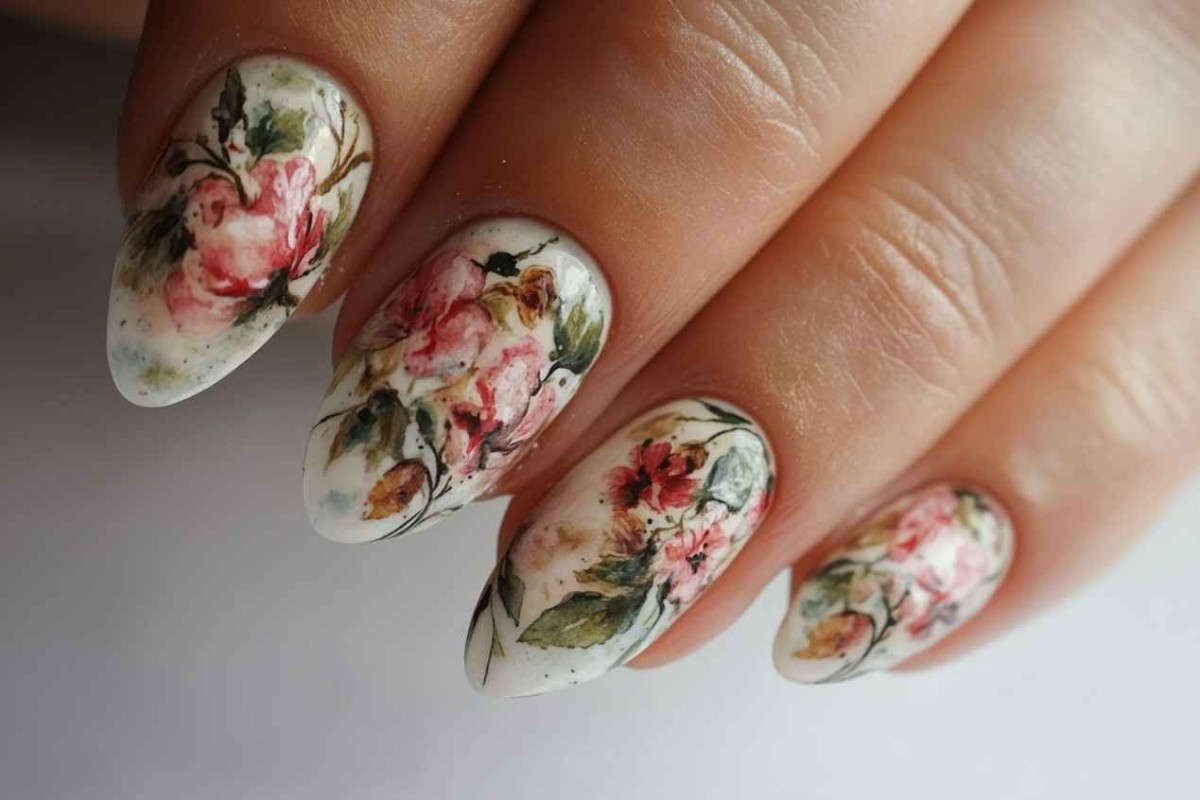 - Цветочные принты – беспроигрышный способ, чтобы придать дизайну романтичные черты. В зависимости от индивидуальных предпочтений на ногтевых пластинах удастся изобразить россыпь мелких ромашек или крупные лепестки розы, орхидеи, служащие для оформления акцентных пальцев. В последнем случае особо эффектно и натуралистично будет смотреться нейл-арт 2024 года, выполненный в технике акварели. Другой вариант – придать узору объемности, прибегнув к технике лепки.