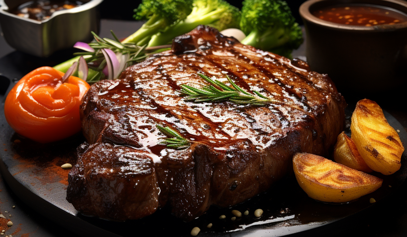 Стейк из говядины с соусом из розмарина и чеснока. Прожаренный до необходимого состояния стейк подается с ароматным соусом из свежего розмарина, чеснока, оливкового масла и специй, который придает блюду неповторимый вкус и аромат. Это блюдо отличается простотой приготовления и идеально подходит для любителей мяса.