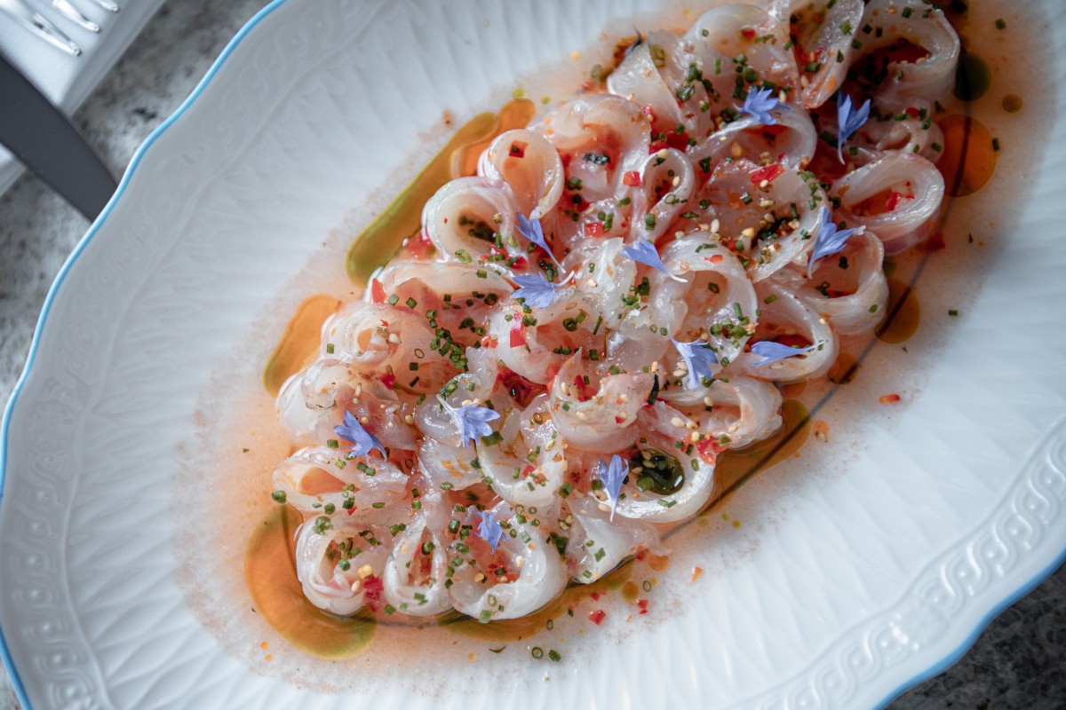 На закуску здесь предлагают, например, крудо из сибаса с томатным понзу, карпаччо из ростовской утки с эстрагоном и сладким перцем, соте из тигровых креветок с чили и лаймом, сочные мини-чебуреки с крабом и рапаны а-ля-бефстроганоф, запеченные со сморчками и брюссельской капустой.