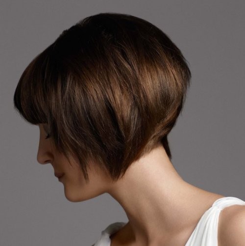 Короткая женская стрижка с удлиненным затылком, фото