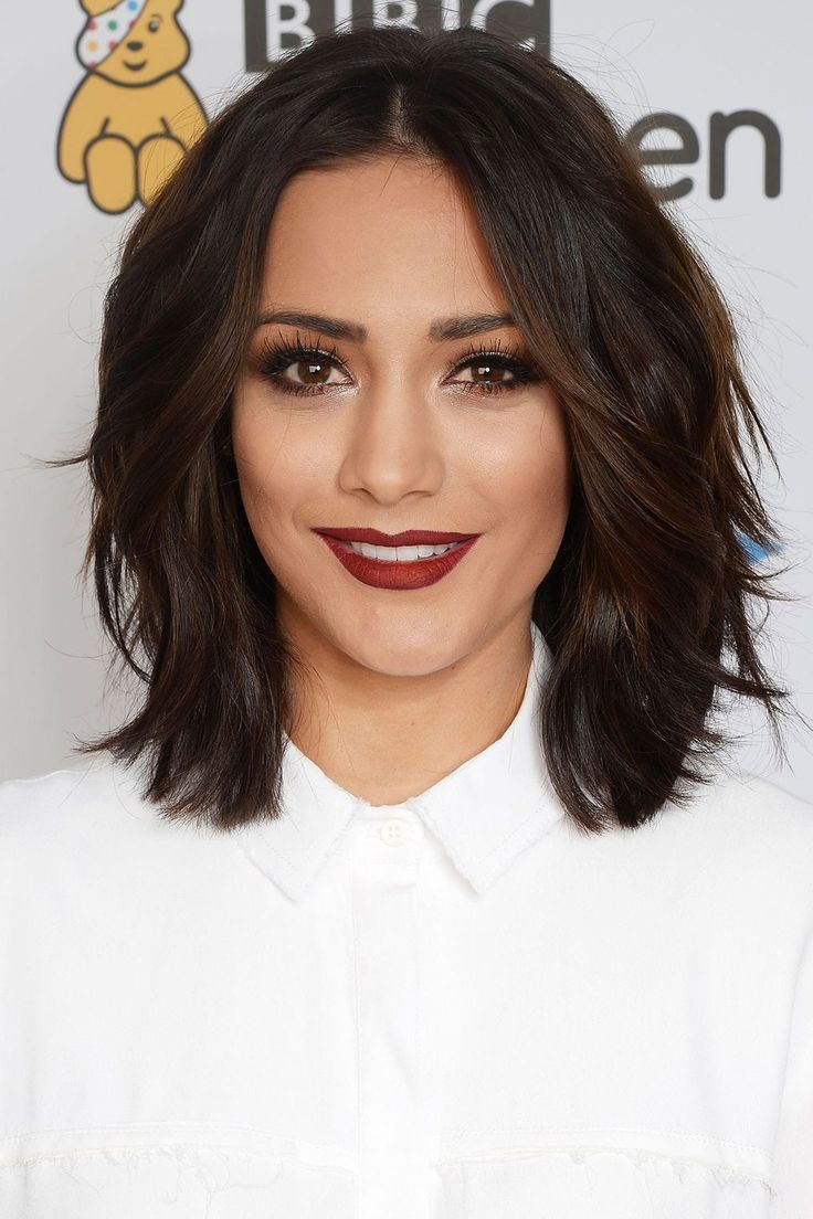 Стрижка по плечи без челки круглое лицо