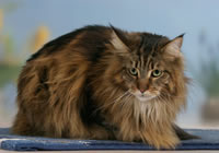 Долгое время считалась самой большой кошкой. Однако ее величина соответствует размерам персидской. Кошка имеет величину от средней до крупной, крепкого телосложения. По темпераменту и характеру схожа с персидской кошкой. Шерсть густая, лохматая, шелковистая на ощупь, блестящая, на передней части тела короче, на животе и задних конечностях длиннее. Масть разнообразная. На теле имеются белые пятна и рисунки на каком-нибудь основном фоне. Голова маленькая по отношению к туловищу, средней ширины, с высокими скулами. Морда средней длины, мощный подбородок придают голове квадратную форму. Нос недлинный с плавным переходом от лба к морде. Уши большие, поставлены широко и высоко, заостренные на концах и широкие у основания, с пучками шерсти внутри. Глаза большие, круглые, широко и слегка косо поставленные. Цвет их может быть различным, но чаще - желто-зеленый.