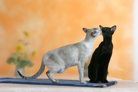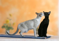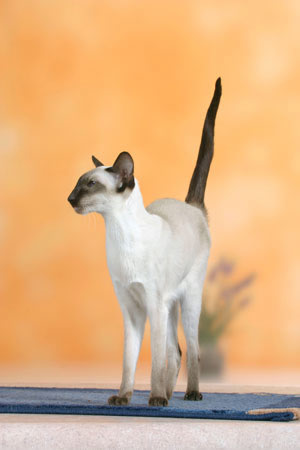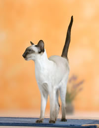 Сиамская, балинез, ориентал, яванез составляют восточную группу пород. Государство Таиланд в прежние времена именовалось еще Сиам. Поэтому порода кошек, возникшая на территории этой страны более 600 лет назад, получила название сиамской. Предполагается, что предком ее была местная бенгальская кошка. Первое упоминание о кошках, близких по внешнему виду к сиамским, можно обнаружить в манускрипте многовековой давности “Книга поэм о кошках”, хранящемся в Национальной библиотеке Тайланда в Бангкоке. Это анонимное произведение содержит описания в стихах белых кошек с черными хвостами, лапами и ушами - современный портрет сиамского сил-пойнта. Книга была спасена в древнем сиамском городе Аиудха, которому уже было 417 лет, когда его практически сравняли с землей в 1767 году завоеватели из Бирмы.
