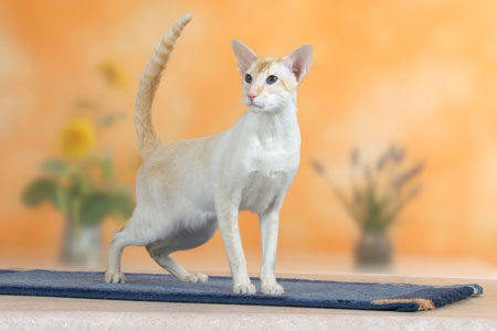 Ноги очень длинные и тонкие, с крошечными овальными лапами. Признанные окрасы: сил-пойнт, шоколад-пойнт, блю-пойнт, лила-пойнт, альбинос.