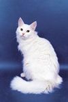 Шерсть длинная, мягкая, шелковистая, густая, с густым подшерстком. Окрас белый (не должно быть желтого оттенка); на морде каштановые пятна, на лбу обязательно должно быть белое пятно. Уши белые. Зеркальце носа, подушечки лап, внутренняя сторона ушей - нежно-розового цвета. Хвост каштановый, с несколькими более бледными кольцами (у молодых кольца заметней). Глаза круглые, светло-янтарные; веки с розовым ободком.