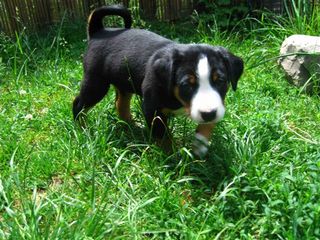 Сильный, крепкий и выносливый аппенцеллер - универсальная рабочая собака. Корпус несколько удлинен, высота в холке 48 - 59 см, вес 23 - 25 кг. Это настоящая собака в истинном смысле этого слова, с короткой плотно прилегающей шерстью, конечностями с хорошо развитой мускулатурой, сильными челюстями и мощной шеей. Окрас трехцветный: черно-подпалый с белыми отметинами на голове, шее, груди, лапах и конце хвоста. Белый цвет не должен перекрывать подпала.