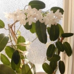 Стефанотис относится к семейству ластовниевых. Это растение очень капризное и проблемное, поэтому не стоит за него браться новичку, хоть оно и привлекает глаз роскошными соцветиями белых цветов. Это вечнозеленая лиана с кожистыми, темными и очень плотными листьями. Его надо обязательно пускать по опоре, потому что это вьющаяся лиана. Растет очень быстро. За сезон может прибавить несколько метров, поэтому необходимо прищипывать концы побегов.