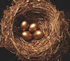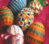 Однотонно выкрашенные яйца можно "развеселить", если нанести на них с помощью кисточки клей, а затем обвалять яйца в бисере, мелко порезанном дождике или крашеном пасхальном пшене.