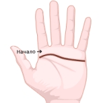Эта линия начинается под Юпитером (указательный палец) или между Юпитером и Сатурном (средний палец). Она образует небольшой изгиб по направлению к центру ладони и доходит до Меркурия (мизинец) или заканчивается между Меркурием и Марсом над Луной. В средней своей части она может идти параллельно линии головы. Она также может начинаться или заканчиваться развилкой. Ответвления имеют значение в начале линии в зависимости от ее направления.