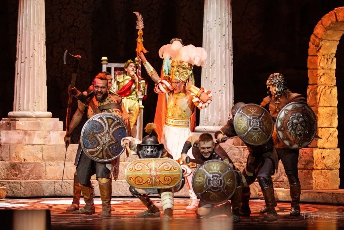 Пожалуй, самая громкая премьера нынешнего театрального сезона. Мюзикл переносит зрителей в Древний Рим – в те времена, где жажда свободы противостоит тирании. На сцене разворачивается трагическая история полководца, любимца императора, который становится жертвой предательства. За режиссуру мюзикла отвечает Рамзила Минибаев, а идею разработали Константин Скрипалев и Анна Скрипалева в сотрудничестве с Петром Елфимовым и Вадимом Лановым, которые написали музыку и тексты. Анна Скрипалева также является автором либретто.