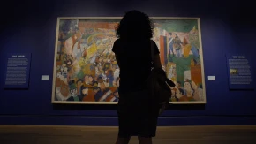 Напротив экспозиции – фотозона: уголок хорошей советской "хаты" (как бы сказали стиляги) с торшером цвета знамени коммунизма, малиновым узорчатым ковром, телевизором и даже грампластинками. Жаль только, что в февральский мороз фотографироваться приходится в пуховике: совсем не в духе эпохи. Тем более, что по соседству представлены образы самых модных нонконформистов СССР. Женские манекены в стеклянных капсулах наряжены в пышные юбки-миди, береты, рубашки с коротким рукавом, а на мужских – непременно цветные панталоны и галстуки необычных фасонов.