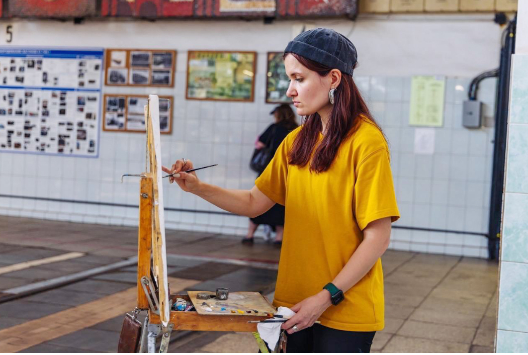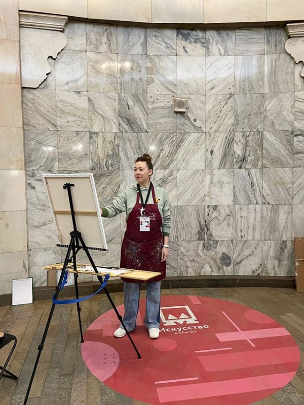 В рамках проекта "Искусство в метро" молодые деятели искусств (к слову, не только живописцы, но и музыканты, певцы, поэты и т.д.) бронируют себе временной слот для творческой работы на станциях подземки. Сейчас на выбор представлены девять станций метро: на Кольцевой, Арбатско-Покровской, Люблинско-Дмитровской и Большой Кольцевой линиях. Проект стартовал летом 2024 года, заявку на участие может подать любой желающий.