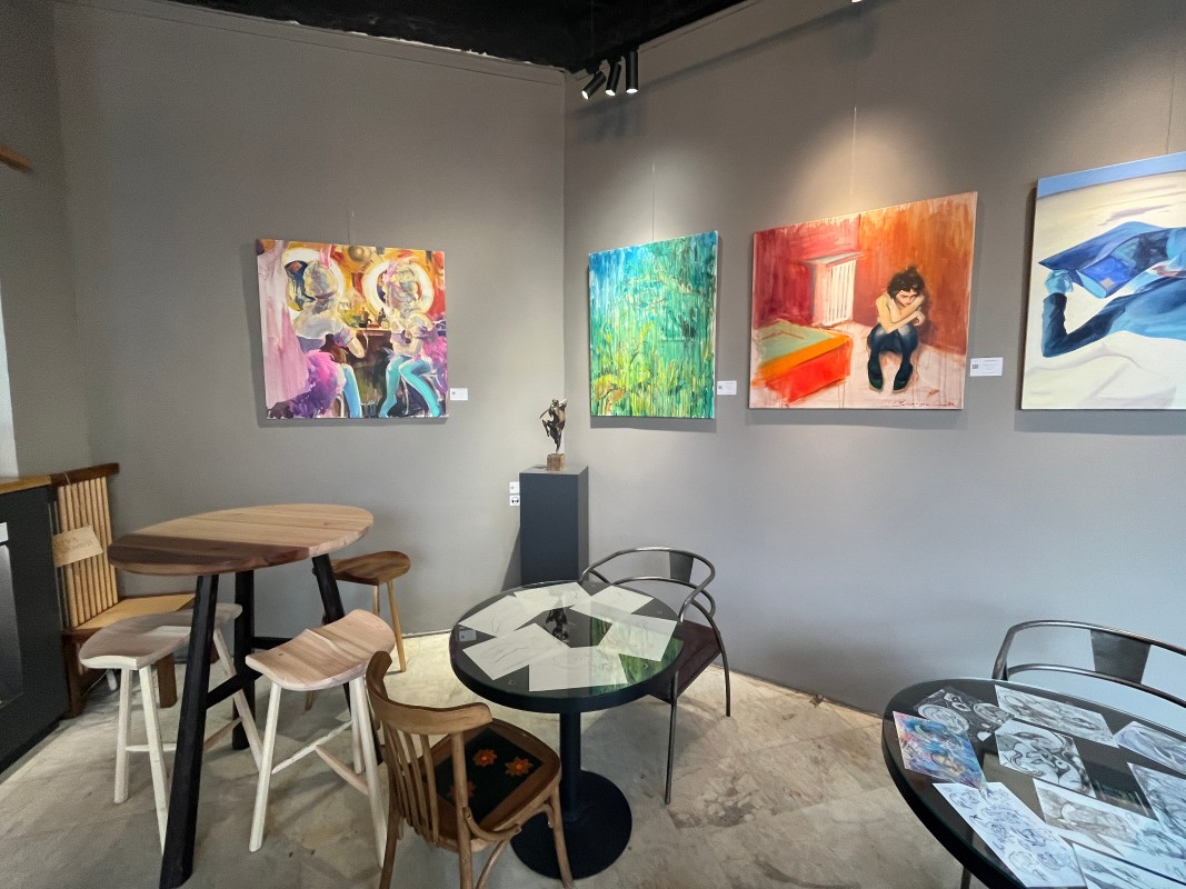 Например, в галерее-кафе "Напротив" на станции метро "Улица 1905 года" регулярно проходят выставки современных художников. Обычно участников отбирают по открытому конкурсу, но иногда в фокус попадает определенное арт-сообщество. На днях в кафе открылся проект магистрантов профиля "Современная живопись" Школы дизайна НИУ ВШЭ. Выставка "Метаморфозы" посвящена теме перемен: разрушения и перерождения идей и вещей – в мире, в природе, в сознании человека.