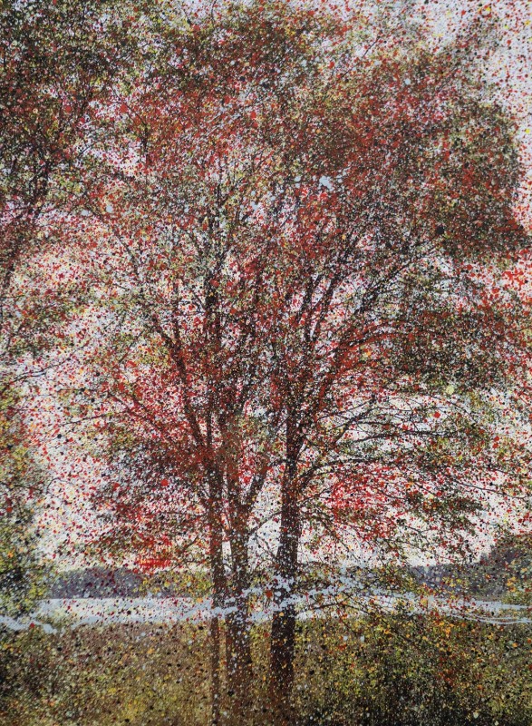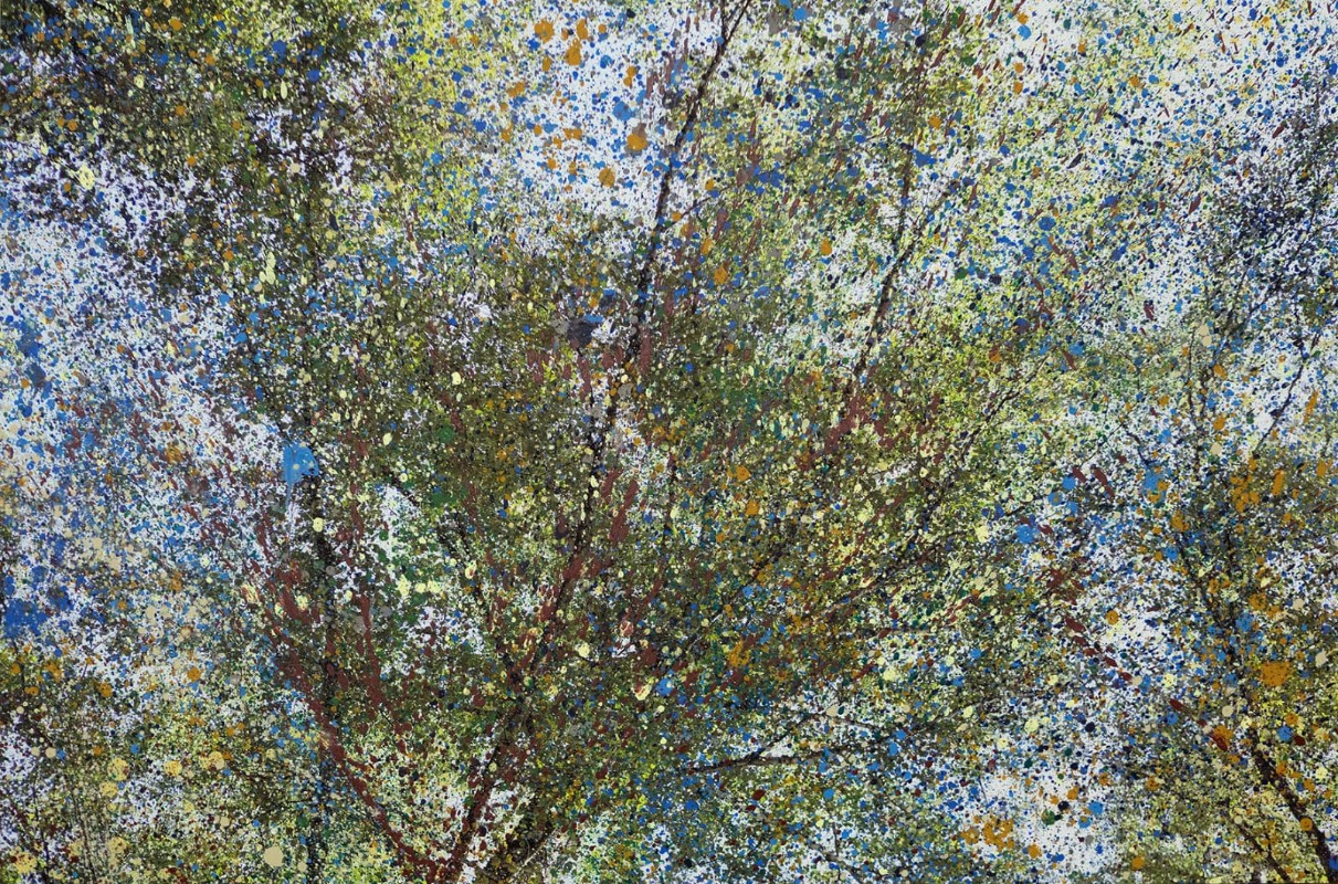И к чему приведет работа двух авторов? Для нас самих это оставалось загадкой до последнего. На протяжении 4 месяцев мы с Наташей отбирали фотографии – чистые, без обработки и вмешательства фотошопа. Пейзажи природы: весна, лето, осень, зима, снятые в разные годы… Мы экспериментировали с бумагой: здесь надо было определиться с той самой нужной степенью матовости, чтобы она могла впитать в себя краску, но чтобы при этом краска не растворялась в ней полностью. Мы играли с яркостью цвета, но самое главное – искали особую технику разбрызгивания краски. Было крайне важно, чтобы фотография и живопись не противопоставлялись друг другу, не доминировали одно над другим, а формировали общую визуальную ткань, где различие бы между ними, очевидная грань стиралась. И – да, мы добились такого эффекта, когда это пограничное состояние ощущается на уровне внутреннего восприятия. Мы старались нащупать неожиданные контрасты, сочетания, которые вызывают эмоции…