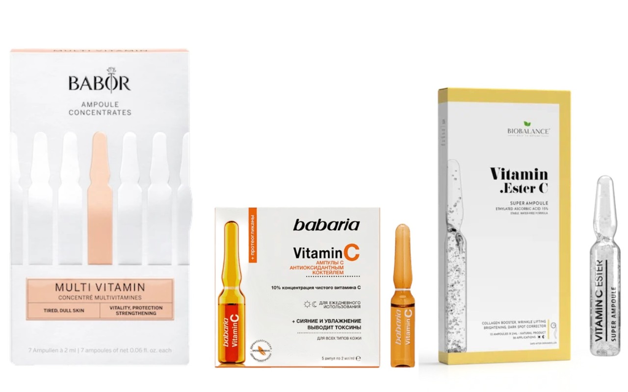 Будучи ценным антиоксидантом, польза которого неоспорима, витамин С входит в состав множества уходовых средств для лица – сывороток, кремов, масок, тонеров. Для тусклой кожи, потерявшей эластичность, косметологи рекомендуют пару раз в год проходить курс ампульных концентратов с витамином С, – они запускают восстановление клеток и в короткие сроки обеспечивают видимый результат. Кожа становится свежей и сияющей.