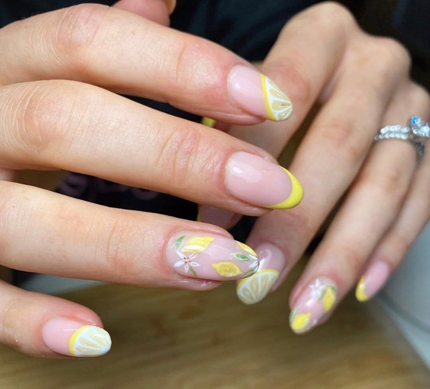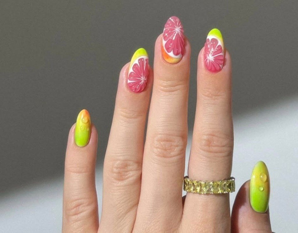 Грейпфруты, апельсины, лимоны, лаймы, – все виды цитрусовых очень популярны в дизайнах маникюра этой весны.