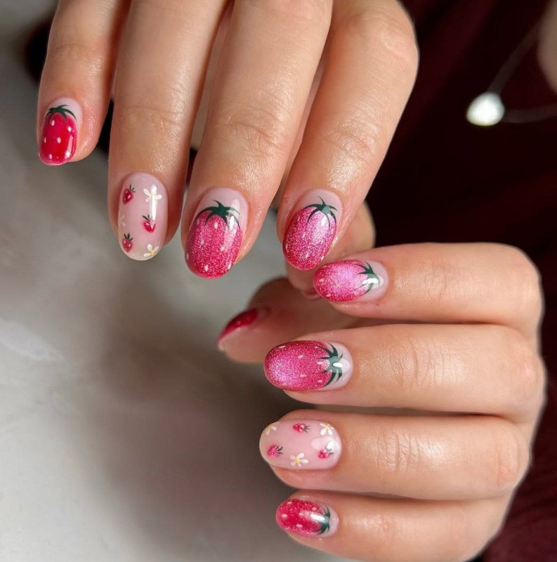 Клубничный маникюр
