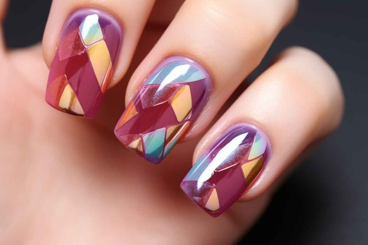 - Маникюр с эффектом стекла создает элегантный и современный образ. Он идеально подходит как для повседневного стиля, так и для особых случаев. Выберите нейтральный и прозрачный оттенок лака или геля, который будет служить основой для дизайна. Можно использовать такие оттенки, как беж, розовый или светло-серый, в зависимости от ваших предпочтений. Наносите вертикальные и горизонтальные полосы непрозрачного белого или серебряного лака или геля, чтобы создать эффект текстуры стекла. Оставьте некоторые участки прозрачными, чтобы сохранить иллюзию прозрачности. Добавьте небольшие блески или пайетки, чтобы подчеркнуть эффект стекла и создать более яркий блеск.