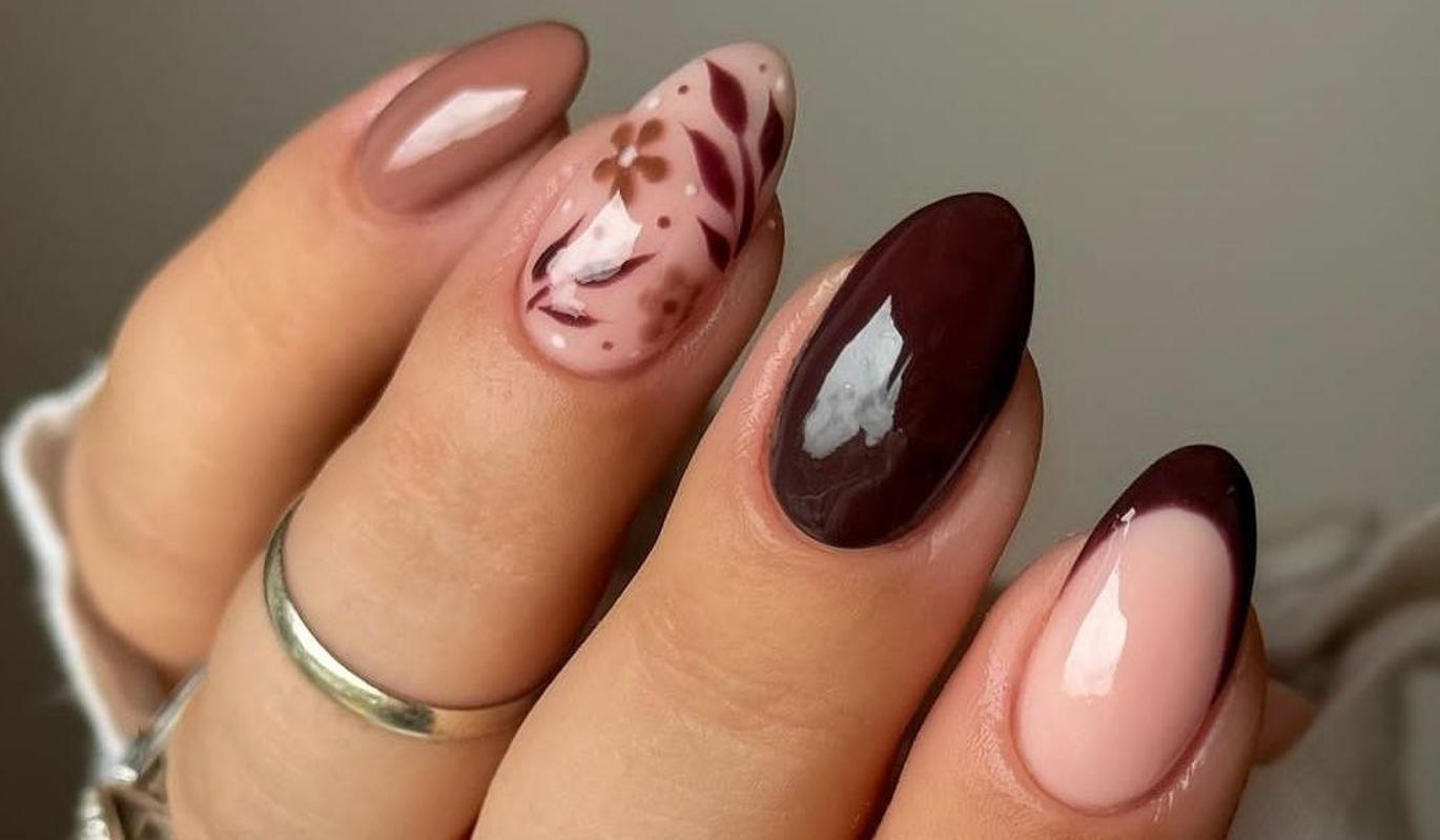 Цветочные мотивы в осеннем коричневом маникюре – еще один тренд, который нам очень нравится. Посмотрите, как стильно может смотреться такой нейл-дизайн!