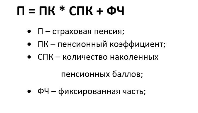 Страховая пенсия по инвалидности представляет собой сумму выплат на основе накопленных трудовых баллов и фиксированной части. Сумма в каждом отдельном случае отличается, ее можно подсчитать по следующей формуле: