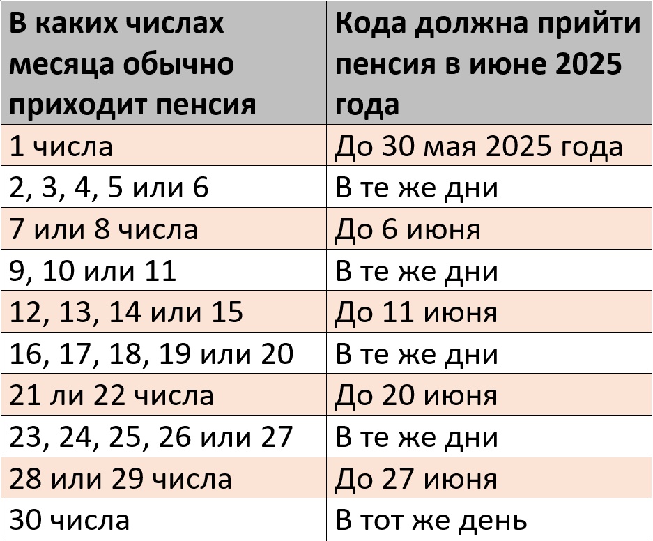 Подробный график выплат пенсии за июнь 2025 года на карту Сбербанка представлен в таблице.