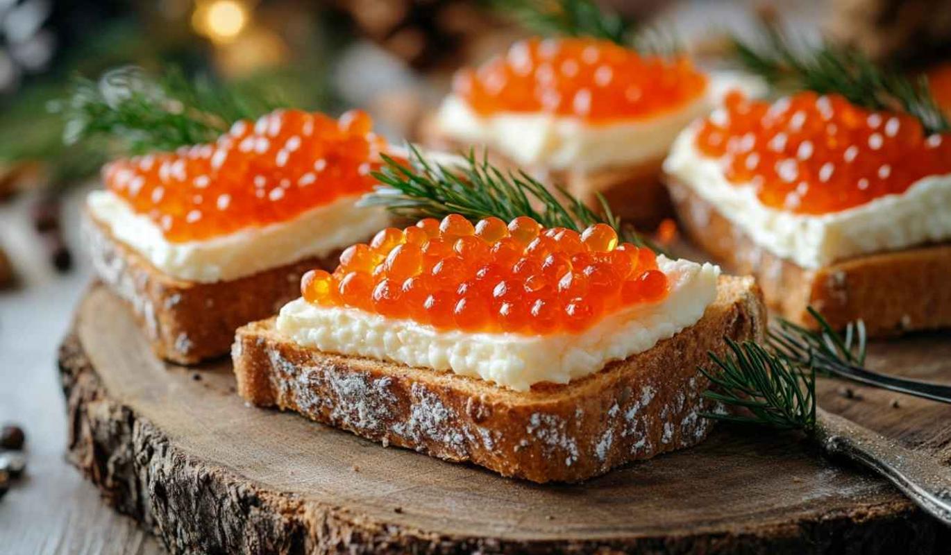 Бутерброды с фетой и красной икрой