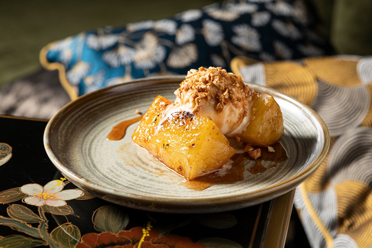 Десертный раздел совсем короткий, но в джин-баре другого было бы трудно ожидать. Помимо сорбета и джелато, здесь найдется фондан на джине (ну, разумеется), а также ананас на гриле, предварительно замаринованный в пряном кисло-сладком соусе. Сервируют его с мороженым, а едят – с удовольствием.