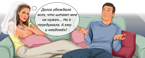Конечно, существует немало примеров того, как люди живут в гражданском браке, рожают толпу детишек, и все у них прекрасно. Но для этого надо, чтобы оба партнера были убеждены, что официальный брак им не нужен. А это редкость. Чаще всего женщина все эти годы жизни молчит и ждет, что когда-нибудь ее мужчина поймет, что самый лучший подарок, который он может ей сделать, – это предложить ей стать его женой официально.