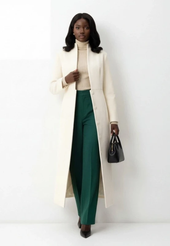 Самая важная деталь – ткань. Слишком тонкий, "вялый" материал сразу упрощает, поэтому лучше выбирать пальто из плотного, даже немного тяжелого. Тогда силуэт получается выверенным, а вещь выглядит более собранной.