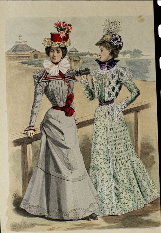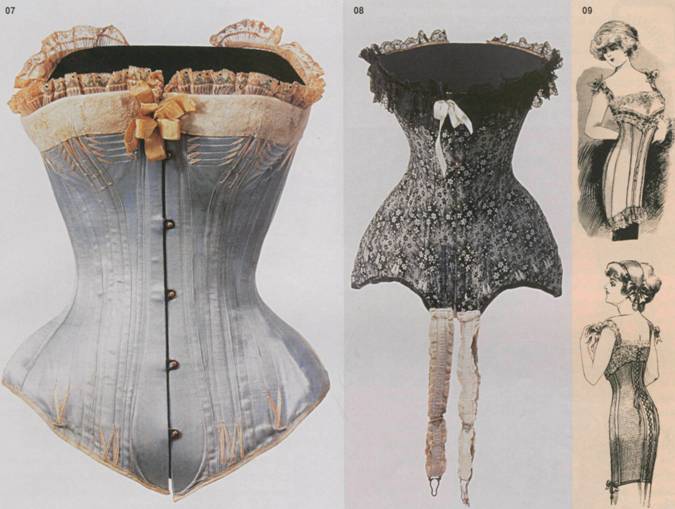 Мода стремилась к изяществу и женственности: господствовали смягченные формы платьев, вошли в моду туфли на высоком каблуке, декор из кружева и бантиков. Один из символов женской красоты той эпохи – тонкая талия, и чем тоньше, тем лучше. Поэтому дамы выбирали корсеты из наиболее жесткого материала, вместо кислорода.