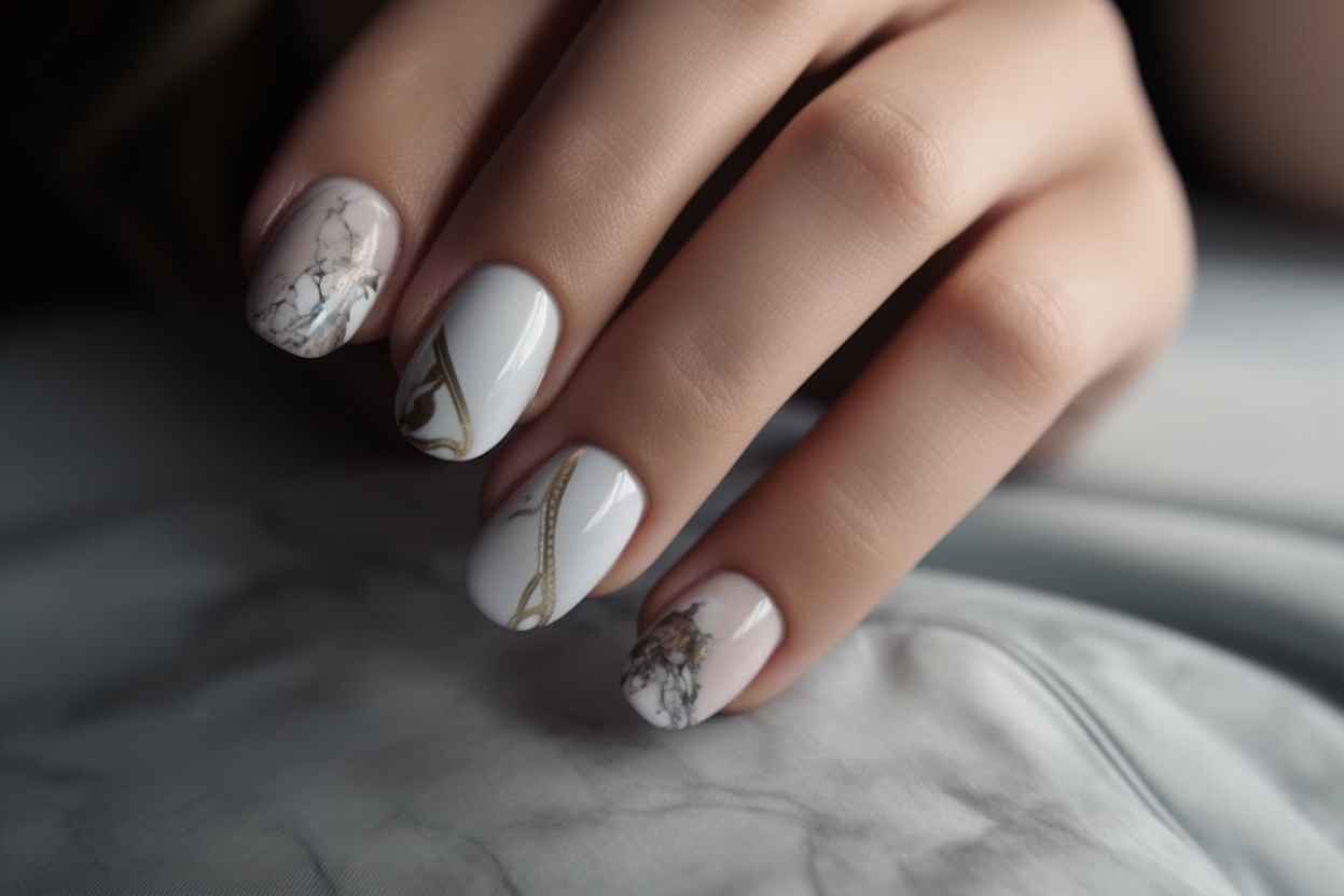 - Мраморный дизайн на ногтях придает им элегантность и роскошь. Вы можете использовать разные оттенки одного цвета или комбинировать несколько оттенков, чтобы создать эффект мрамора и имитировать рисунок камня на ногтях.
