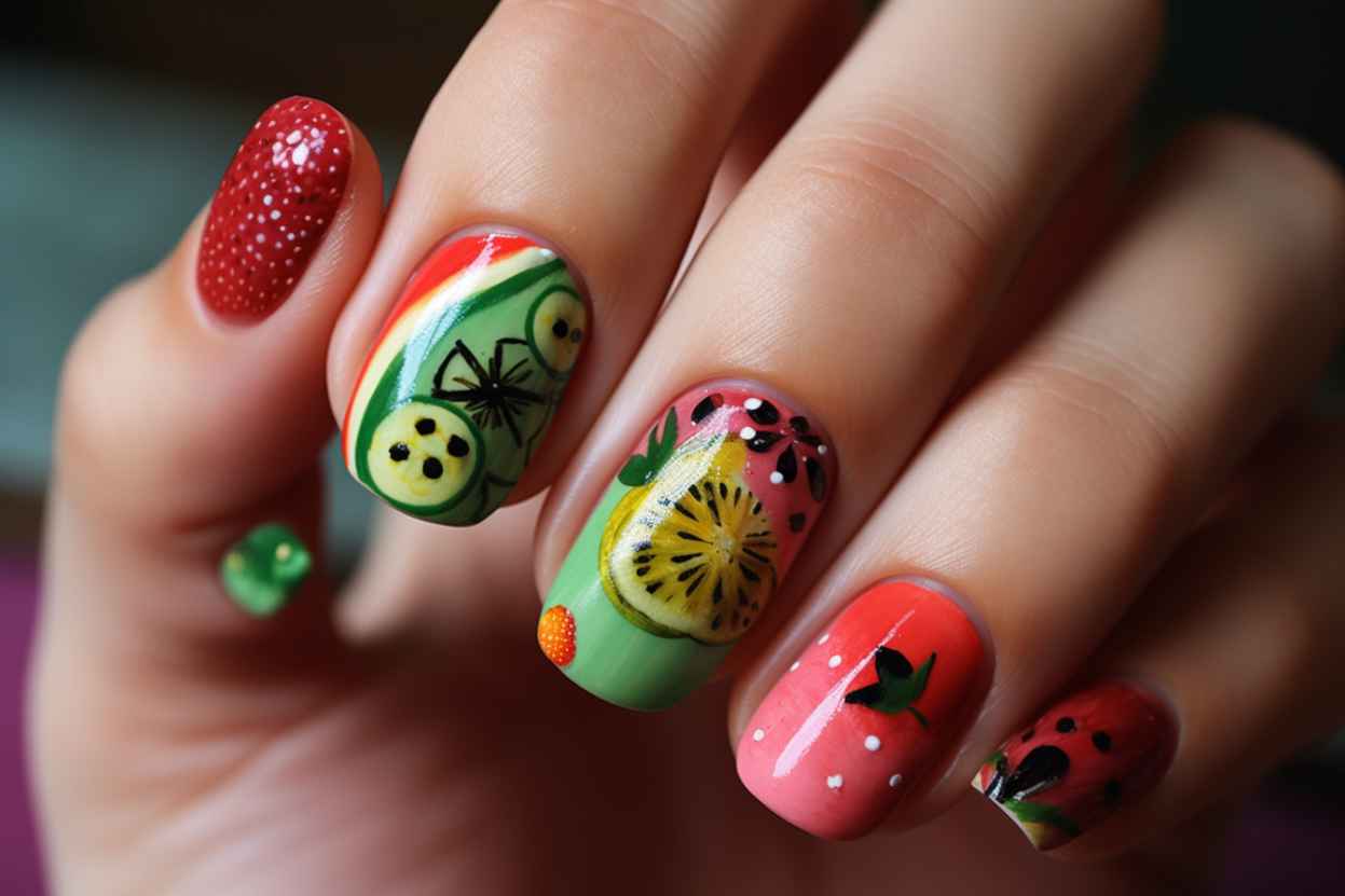 - Используйте наклейки с изображением фруктов для украшения ногтей. Это быстрый и простой способ добавить оригинальности маникюру.