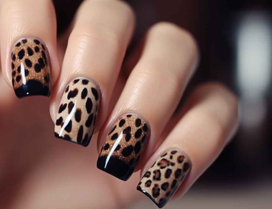 - Узоры с животными принтами, такие как леопардовая расцветка или змеиная кожа, помогут придать вашему маникюру оригинальности и дерзкого характера. При оформлении рисунка прибегают к подбору лаков нестандартных неоновых оттенков.