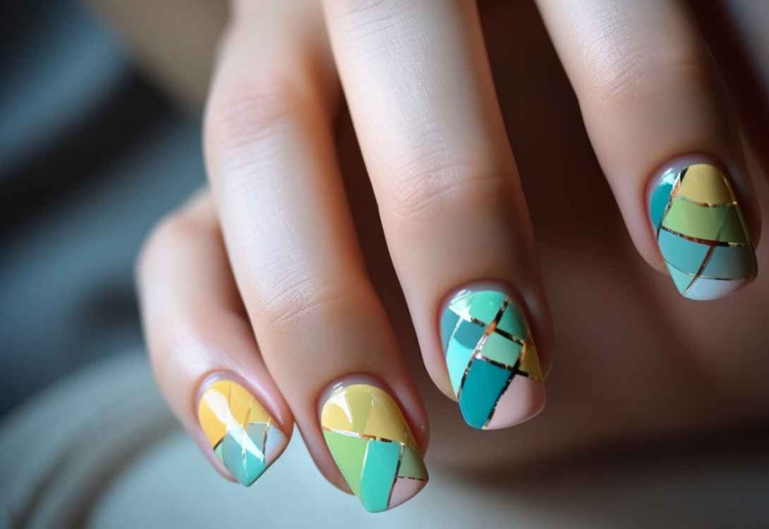 - Используйте геометрические фигуры, такие как прямоугольники, треугольники или круги, чтобы создать простые и симметричные узоры на ногтях.