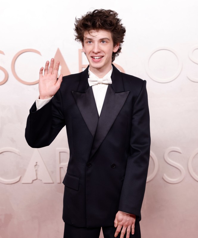 Марк Эйдельштейн – "русский Тимоти Шаламе", как его принято называть, превзошел нерусского Тимоти. Марка одевал креативный директор Saint Laurent Энтони Ваккарелло. Предпочтение было отдано классическому черному смокингу, а дополнила его белая бабочка, разбавившая образ своей непринужденностью.