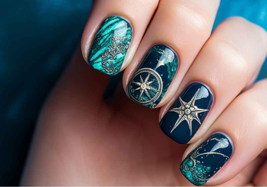 При желании соответствовать актуальным трендам модницы обращают внимание на стильные новинки нейл-арта. Для создания маникюра в морской тематике стоит обратить внимание на следующие варианты оформления: