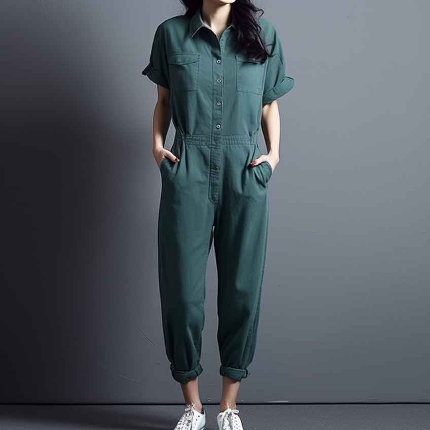 - Модели имеют свободный крой, напоминающий мужской. Это создает эффект расслабленности и непринужденности, позволяя сохранить женственность. Комбинезоны могут быть выполнены из различных материалов, включая хлопок, лен, деним.