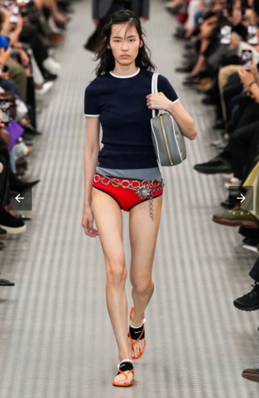 Микро шорты Miu Miu, которые стали модным хитом прошлого лета, в новой весенне-летней коллекции бренда чуть меньше выглядят по прежнему вызывающе, но стильно.