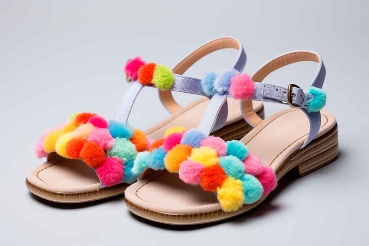 - Модели на низком ходу, обеспечивающие комфорт в носке, можно украсить разноцветными помпонами. Интересные детали дополняют ремешки, которые перекрещиваются между собой и служат для оформления верхней части обуви.