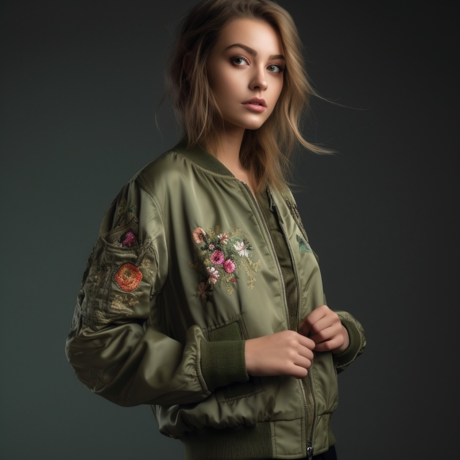 - К популярным тенденциям женской верхней одежды можно отнести стиль милитари. Куртка изготавливается из плотной ткани, выполненной в бежевой, оливковой расцветке, оттенке хаки. Женственные нотки в образ привнесёт дополнение золотистыми пуговицами и вышивкой, яркими аппликациями.
