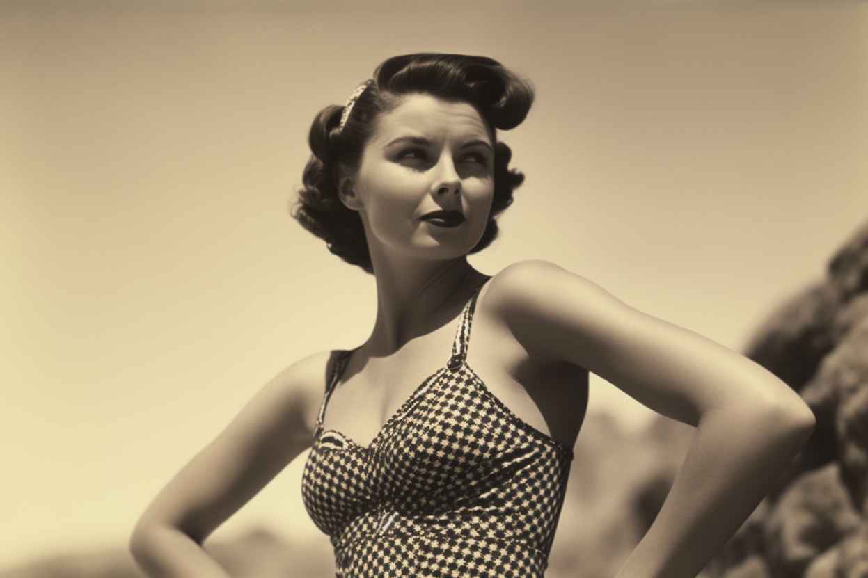 - При желании сделать талию визуально стройнее станет находкой модель, имеющая сходство со стилем ретро. Эффект достигается с помощью плавок, имеющих завышенную посадку. Верхняя часть подбирается в зависимости от особенностей фигуры, она может иметь вид бандо, халтера, укороченного топа.