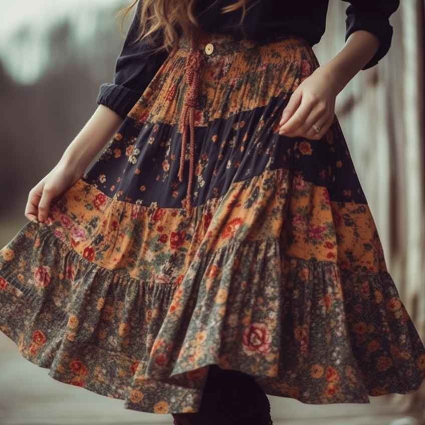 - Комбинированные модные юбки помогут привлечь внимание к обладательнице такой вещи. При создании моделей прибегают к сочетанию тканей, отличающихся по структуре, дополнению разноцветными вставками. Любительницы стиля бохо оценят вещи, выполненные в технике пэчворк, состоящие из отдельных контрастных лоскутов ткани.