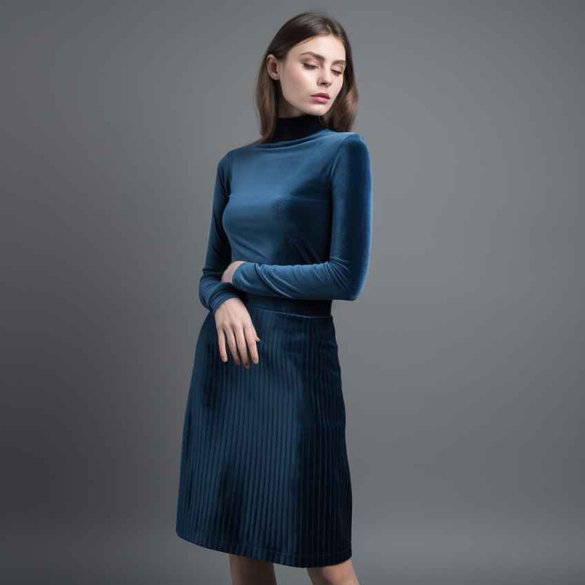 - Осенью-зимой будут актуальны велюровые модели. Ткань в рубчик придаст изделию изысканные черты. При выборе расцветок пользуется популярностью сине-голубая, сиренево-фиолетовая цветовая гамма.
