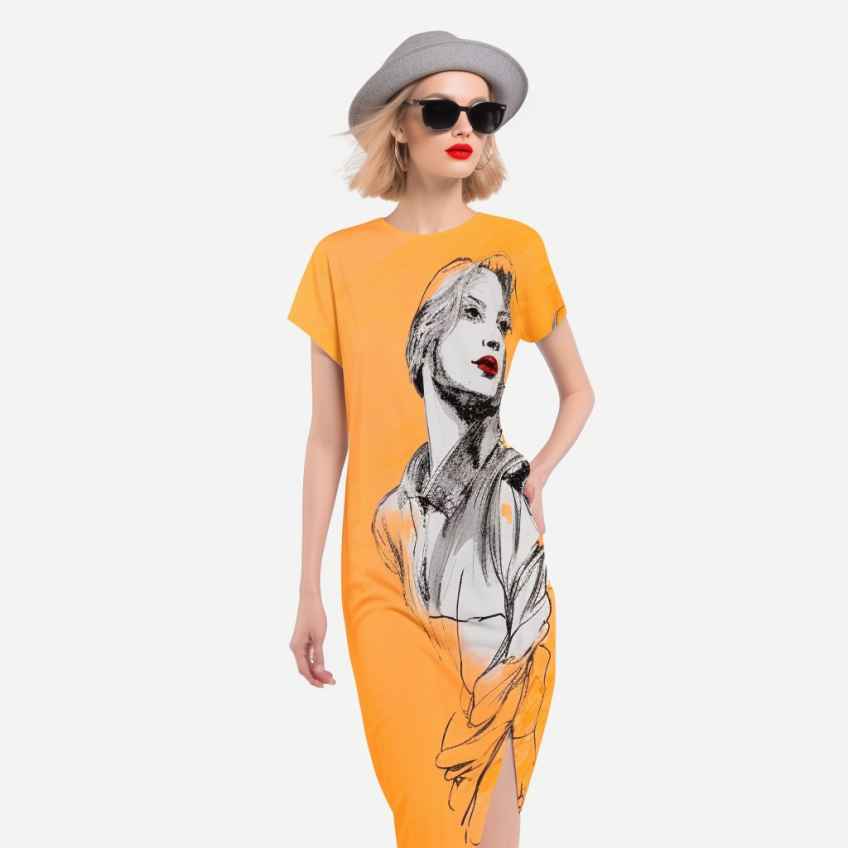 - Футболка-платье станет достойной альтернативой аналогичному предмету гардероба. Вещь создается в лаконичном дизайне или дополняется неординарными деталями. Примером последних служит завязывание узла в области подола, создающего эффект асимметрии.