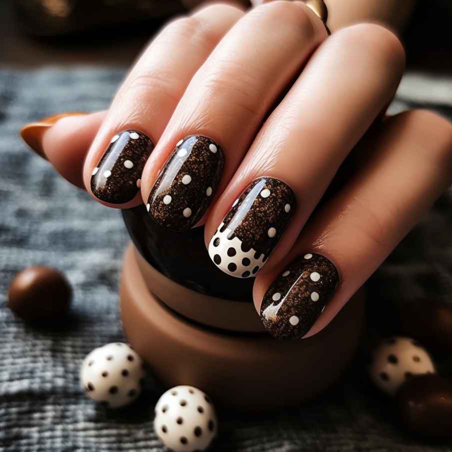 - Трендовыми считаются кофейные цвета, представленные в гамме, варьирующейся от бежевого до темно-коричневого тона. Допускается сделать омбре, плавно переходящее из одного цвета в оттенок сходной тональности.