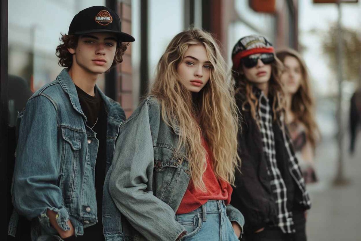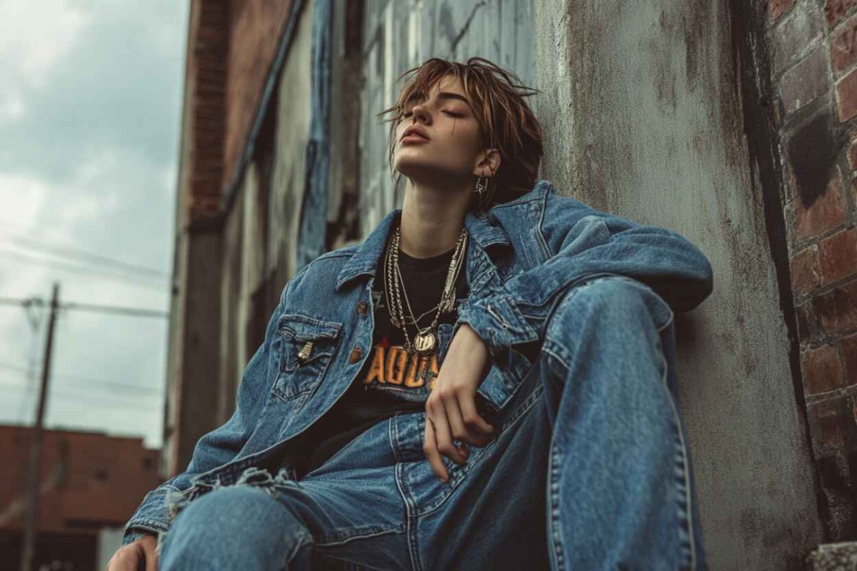Подобные образы – отличное решение для самовыражения и проявления индивидуальности подростков. Для данного стиля свойственна небрежность и неопрятность, которая является нарочито подчеркнутой. При этом при выборе цветовой гаммы стоит отдавать предпочтение приглушенной нейтральной базе, но разбавлять ее яркими пятнами, крупными надписями. Приветствуется дополнение вещей потертостями и неким эффектом поношенности. Предметы гардероба из денима зачастую идут в сочетании с рваными краями и всевозможными прорезями.