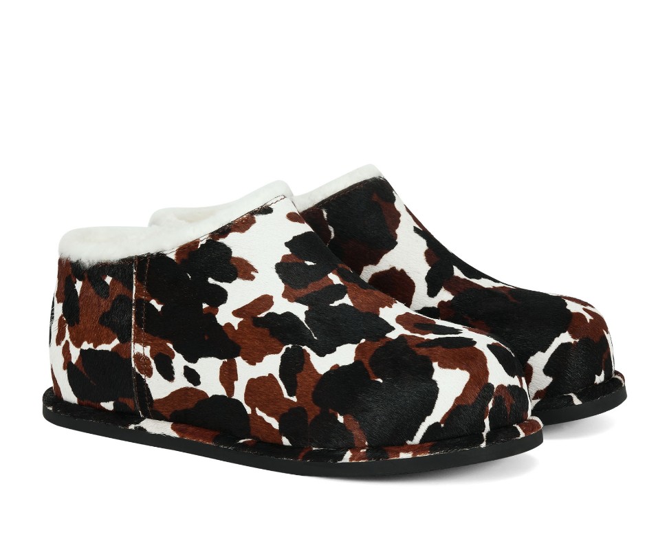 Для тех, кто ищет в зимней обуви не только комфорт, но и элемент привлечения внимания, актуальны модели с анималистичными принтами. Например, вариации с коровьим принтом в палитре белого, черного и коричневого. Когда стелька, подкладка и внешний материал выполнены из мягкого меха с таким узнаваемым узором, такая пара автоматически становится центром всего образа, запросто сочетаясь с базовыми цветами верхней одежды.
