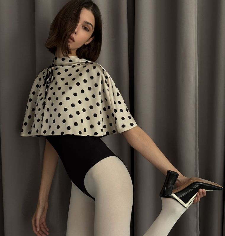 Горох давно перестал быть только про ретро-платья и эстетику пин-апа. Сегодня этот принт меняет текстуры и захватывает те части гардероба, где мы привыкли видеть только монохром. Клео.ру собрал пять вещей от локальных брендов, которые переосмысляют классический принт polka dot, предлагая взглянуть на него через призму сложного кроя и тканей, которые мы совсем не привыкли видеть в гороховом исполнении.