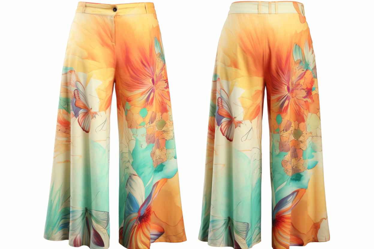 - Летние женские брюки могут иметь различные принты и узоры, которые придают им стильный и модный вид. Варианты оформления могут быть разнообразными, от цветочных и геометрических узоров до полосок и животных принтов.
